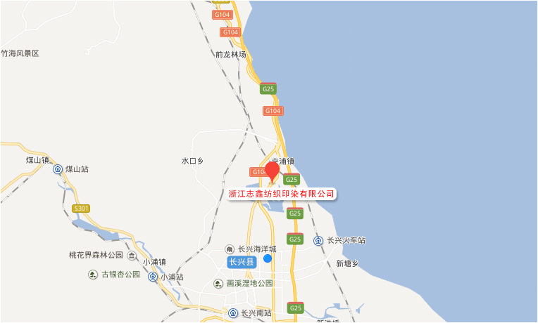 浙江志鑫紡織印染有限公司 地 址:浙江長興縣夾浦鎮(zhèn)環(huán)城工業(yè)園區(qū) 郵 編:313109 電 話:0086-572-6015777 6015999 400免費電話:4008162091 傳 真:0086-572-6016885 E-mail:sales@zhixintex-zj.com